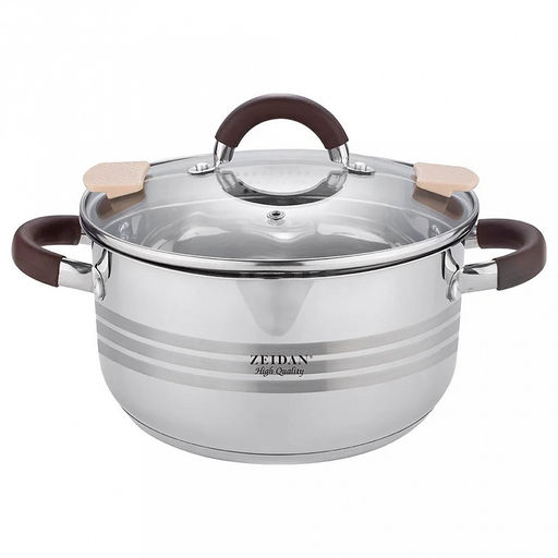 • "Zeidan" Кастрюля из нержавеющей стали 5л, д22см, h17см, крышка стеклянная со сливом, 3-х слойное капсулированное дно, внутри матовая полировка, снаружи комбинированная полировка, подарочная упаковка (Китай)