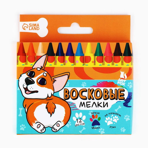 • Цена за 3 шт. Восковые мелки, 12 цветов «Корги»