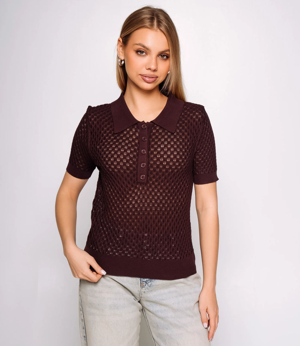 Футболка - это вещь, которая выделяет и подчеркивает уникальность каждой представительницы прекрасного пола. Тонкая ажурная трикотажная футболка приталенного силуэта с мягким отложным воротником и короткими рукавами средней длины, выполненная в мелкий геометрический открытый узор с прозрачной фактурой, имеет вертикальную планку с несколькими застёгивающимися пуговицами по линии груди. Изделие из 65% хлопок и 35% полиэстера сохранит свою первоначальную привлекательность даже после многих стирок. Вы будете его носить с большим удовольствием. Обратите внимание на цвет - он является насыщенным и полностью соответствует фотографии на сайте. Чтобы вы не сомневались в размере, мы предоставили на странице таблицу. Воспользовавшись ею, вы сможете сами сделать мерки и убедиться. Установленная нами цена является доступной и адекватной. Подарите себе удовольствие быть элегантной и неповторимой с нашей футболкой! -- Характеристики -- Цвет: коричневый Пол: Женский Страна производитель: Китай Сезон: Всесезонный Материал: Хлопок, Полиэстер