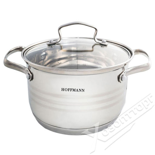 Кастрюля HOFFMANN, объемом 5,1 л., диаметром 22 см.. выполнена из высококачественной нержавеющей стали толщиной 0,5 мм. Оснащена 5-х слойным энергосберегающим капсульным дном, толщиной 1,5 см. В комплекте поставляется крышка из закаленного стекла с отверстием для паровыпуска. Подходит для всех видов плит.­