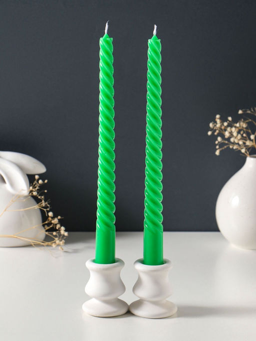Цена за 2 шт. Свеча витая 25 см (набор 2 шт) 57 гр, 5 ч, цв. зелёный