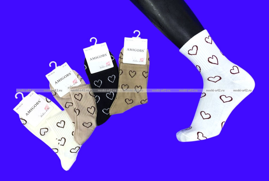 AMIGOBS носки женские цветные с принтом "Сердечки" арт. 9519 оптом.