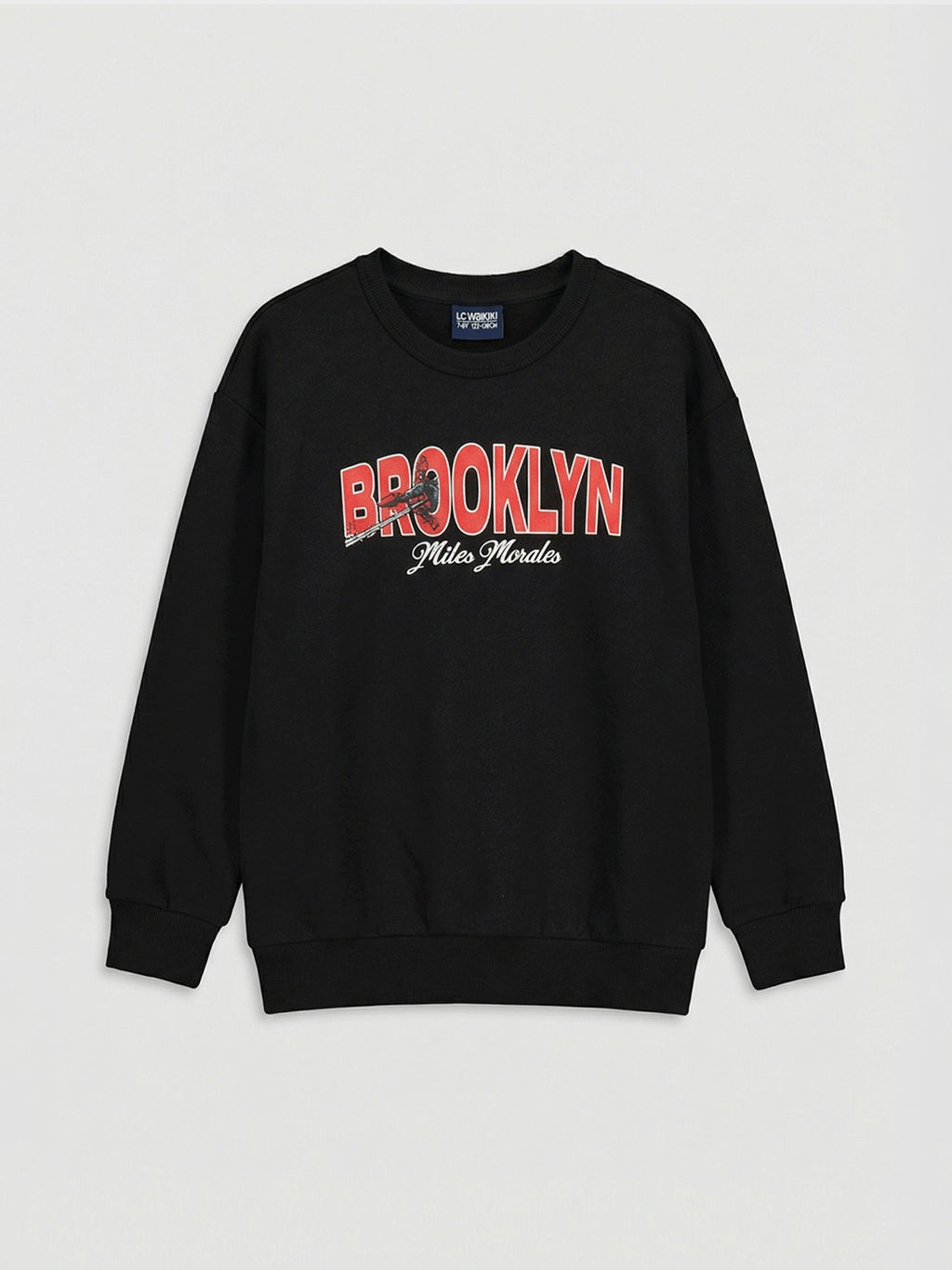 Bisiklet Yaka Spider-Man Bask?l? Erkek ?ocuk Sweatshirt