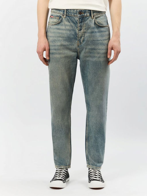 Джинсы свободного кроя, зауженные книзу, представляют собой классическую модель с пятью карманами, прямым кроем штанины от бедра и сужением от колена. Ширинка на молнии с металлической застёжкой на пуговицу. Задние карманы украшены фирменной зигзагообразной строчкой, а на поясе присутствует узнаваемый табачный патч, напоминающий о происхождении джинсовой ткани. Эти джинсы имеют полную длину, а плотная ткань обеспечивает долговечность изделия. Они станут отличным дополнением к любому повседневному образу и займут почётное место в вашем гардеробе.­