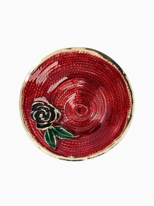 Брошь «Шляпа» с цветком, цветная в черненом золоте