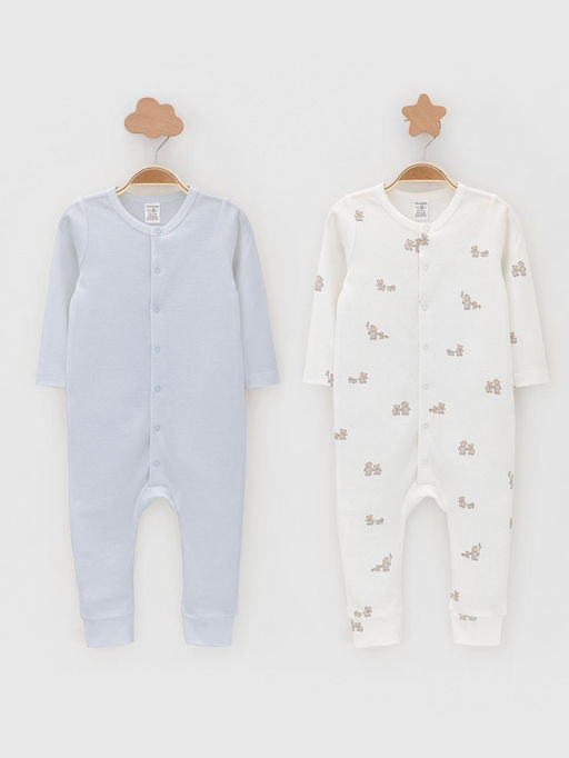 Комбинезоны для новорождённых из мягкого эластичного трикотажа, произведённого из натурального хлопка. В упаковке 2 штуки. Застёгиваются спереди на кнопки. Оригинальная набивка выполнена из стойких гипоаллергенных текстильных красителей. Все трикотажные полотна производятся в соответствии с нормами швейцарского сертификата ЭкоТекс. . Состав: 100% хлопок
