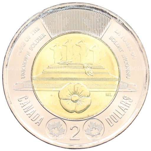 Монета 2 доллара 2025 года Канада Чествование неизвестного солдата Канады