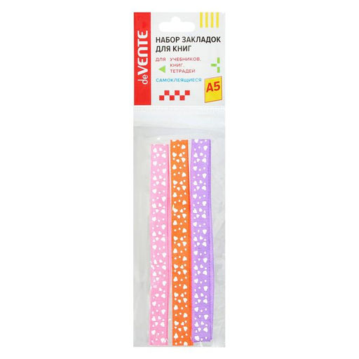 • Цена за 5 шт. Закладки-ляссе с клеевым краем deVENTE. Hearts, 12×290 мм, для книг А5, МИКС × 4 цвета, картонная коробка