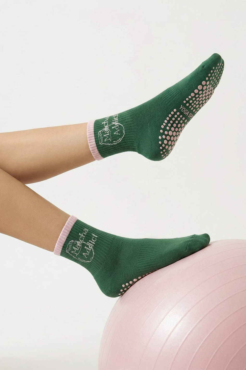 • Yesil Sloganl? Kayd?rmaz Tabanl? Yoga/Pilates Jakar Orme Corap THMSS26CO00003