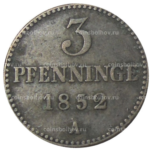 Монета 3 пфеннига 1852 года A Германсике государства Мекленбург-Шверин