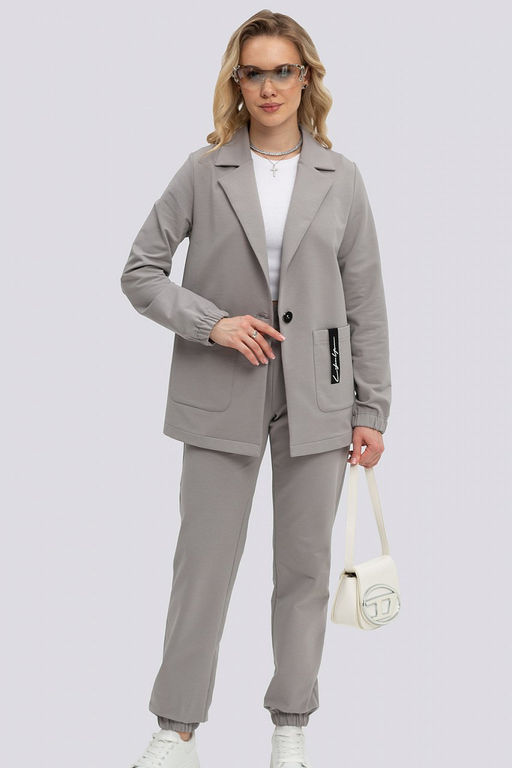 Костюмы в стиле спорт шик - любимая одежда современных покупательниц. Они удобные, комфортные и нарядные одновременно. Классический жакет отлично подружился с брюками спортивного стиля. Жакет прямого силуэта, умеренного объема, по низу рукава резинка. Воротник пиджачного типа придает образу элегантности, строгости. Брюки джоггеры с резинкой по линии низа немного расслабляют. Накладные карманы добавляют уют. Яркая цветовая палитра разбавлена новинками пепельным и черным меланжем, которые смотрятся очень оригинально. Учитывая все особенности этой модели, она несомненно станет незаменимой для своей обладательницы. Состав трикотажа: 75% хлопок, 20% полиэстер, 5% спандекс.­