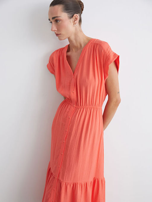 • V Yaka Dokulu Belden Oturtmal? Elbise