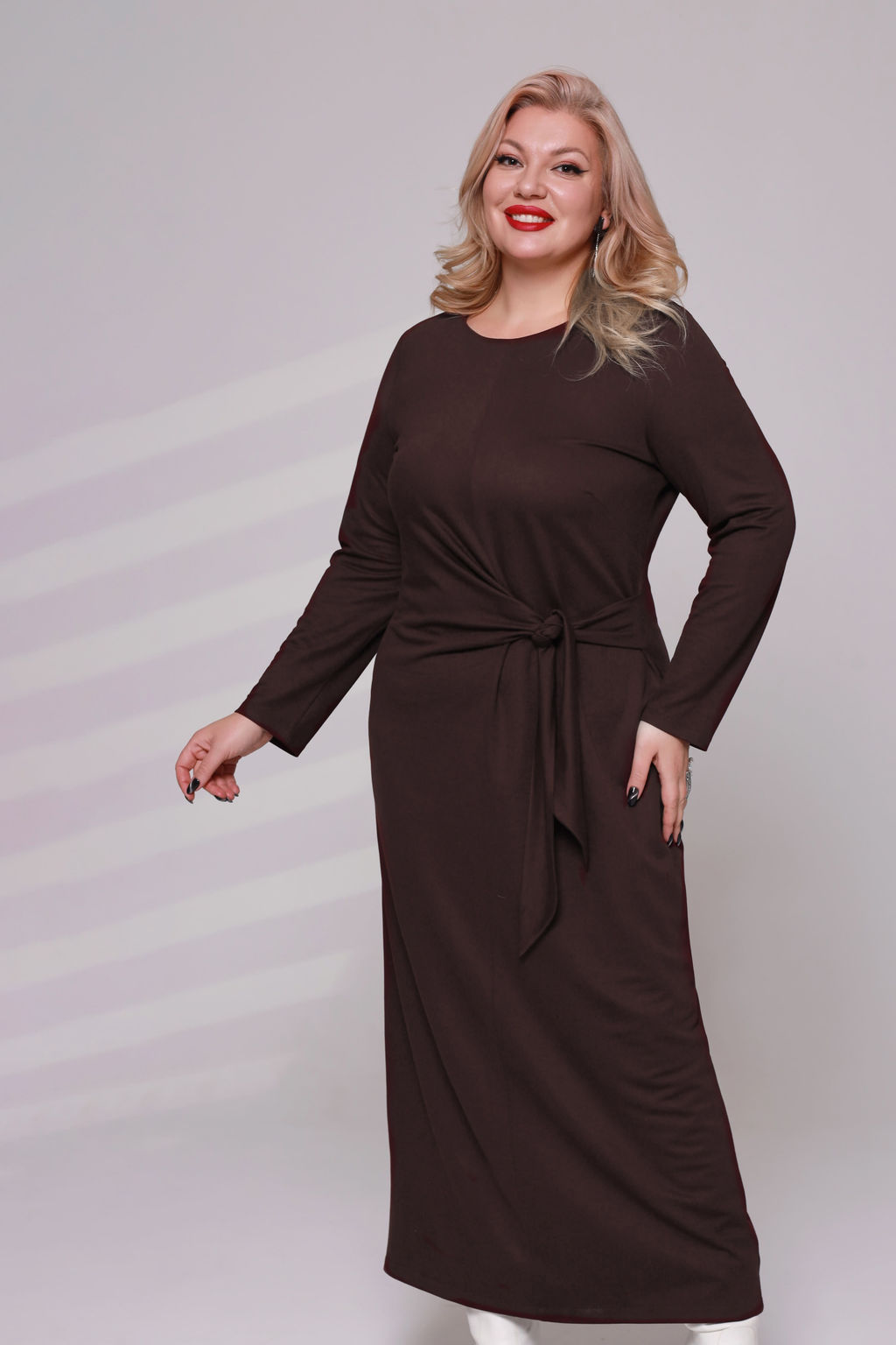 Платье однотонное с завязкой сбоку шоколад