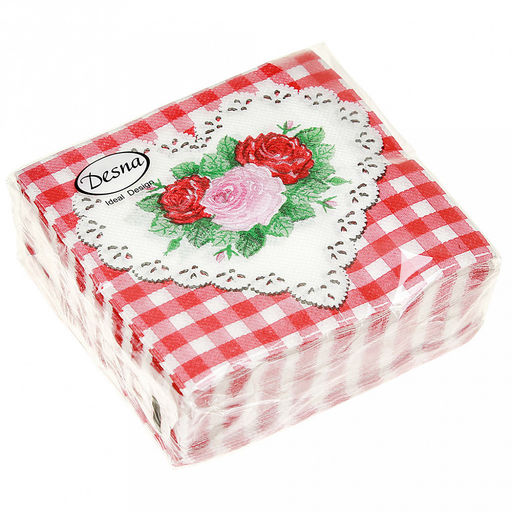 • Салфетки бумажные "Desna Design" 24х24см, 1 слойные, 40 штук в упаковке, 100% целлюлоза, "Сердце и розы" (Россия)