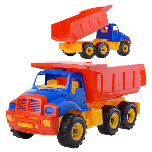 Самосвал "Мишка" - красивая, надежная машина на 6 колесах на металлических осях с вместительным кузовом. Без нее просто не обойтись на стройке! Устойчивые рельефные колеса и крепкий кузов позволяют выдержать достаточную нагрузку и перевезти игрушки или стройматериалы в пункт назначения. Кузов поднимаеся и опускается, колеса крутятся. Машинка знакомит ребенка с различными видами техники, их особенностями и принципом действия, развивают мелкую моторику, воображение.