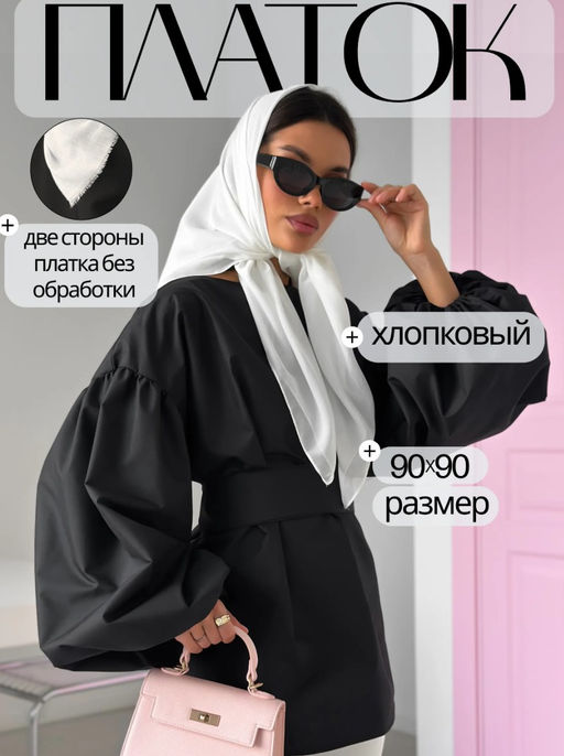 • K13571 Платок (90/90см хлопок вискоза) МОЛОЧНЫЙ