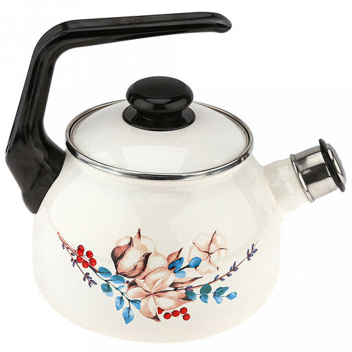 • "Унесенные ветром" Чайник эмалированный 2,5л, со свистком, сферическая форма, металлическая крышка (Россия)