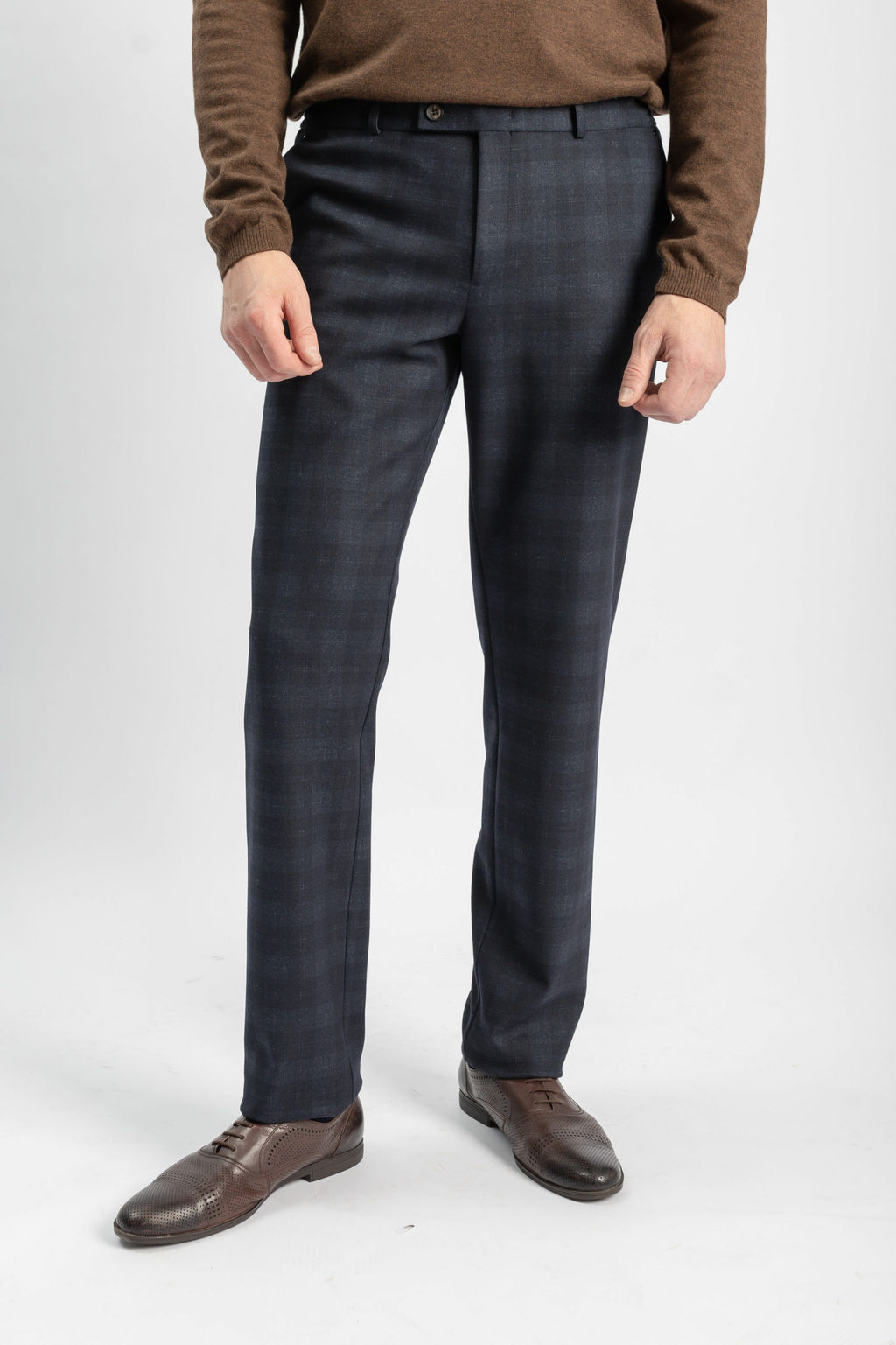 Брюки зауженные, без стрелок.