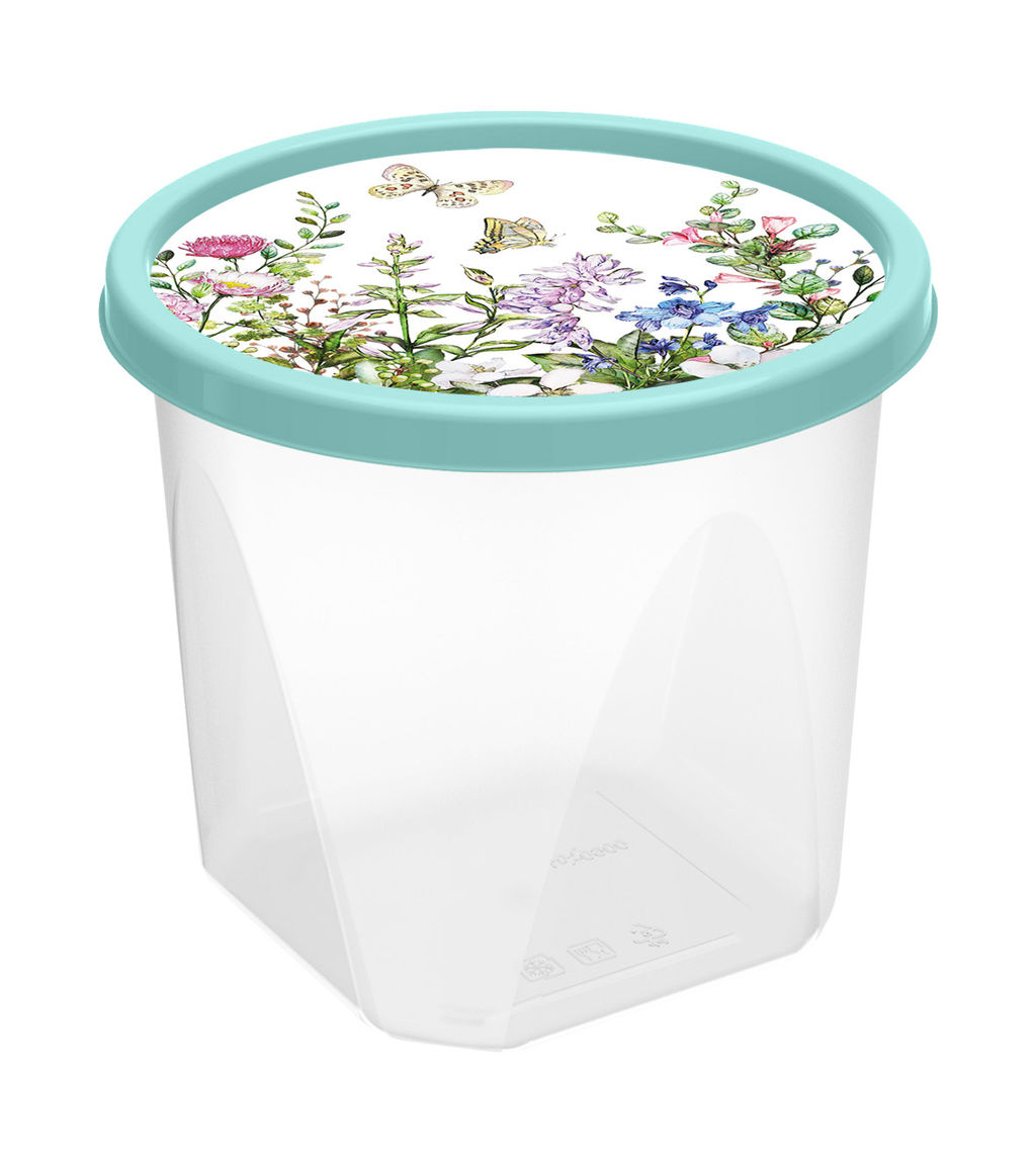 • Цена за 2 шт. Контейнер для продуктов круглый 1л с декором "Цветущий луг" (светло-зеленый) 223110717/01