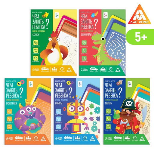 Покупать набором выгоднее!Не знаете, чем занять ребёнка в гостях или в дороге? Тогда набор игр-книг — это то, что нужно. С его помощью малыш не только интересно проведёт время, но и разовьёт логику, внимание, наблюдательность и моторику рук.Какие книги входят в набор?Найди и покажи. Сказки. Ребёнка ждут задания на логику, счёт и поиск предметов. На страницах книги собраны популярные русские народные сказки.Найди и покажи. Динозавры. Малыш будет делать задания на логику, счёт и поиск предметов. На страницах книги кроха встретит динозавров, которые обитали на Земле миллионы лет назад.Найди и покажи. Монстрики. Ребёнок будет выполнять задания на логику, счёт и поиск предметов. На страницах книги спрятались забавные монстрики, которые хотят, чтобы с ними поиграли.Найди и покажи. Роботы. Кроха сделает задания на логику, счёт и поиск предметов. Малыш встретит на страницах книги роботов, которые приготовили множество загадок.Найди и покажи. Пираты. Ребёнка ждут задания на логику, счёт и поиск предметов. Пираты, покорители морей и океанов, откроют малышу много интересного!Играйте и веселитесь вместе с ЛАС ИГРАС! Набор: Да. Возраст: От 5 лет. Количество страниц: 26. Год издания: 2022. Жанр игры: Развивающая. Развитие навыков: Реакция. Развитие навыков: Память. Развитие навыков: Логика. Развитие навыков: Воображение. Развитие навыков: Внимание. Развитие навыков: Фигуры, цвета. Тема обучения: Развитие логики/мышления. Тема обучения: Цвета, формы, звуки. Тема обучения: Окружающий мир. Тип обложки: Мягкий переплёт. Бесплатная доставка: Да.