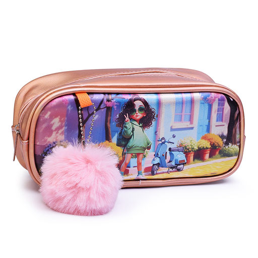 • Пенал "Chic City Girls" 22,5x10,5x6,5 см, антивандальная перламутровая искусственная кожа до -40C, отделение на молнии, овальный для 100 предметов, декоративный подвес в виде мехового помпона, десертный