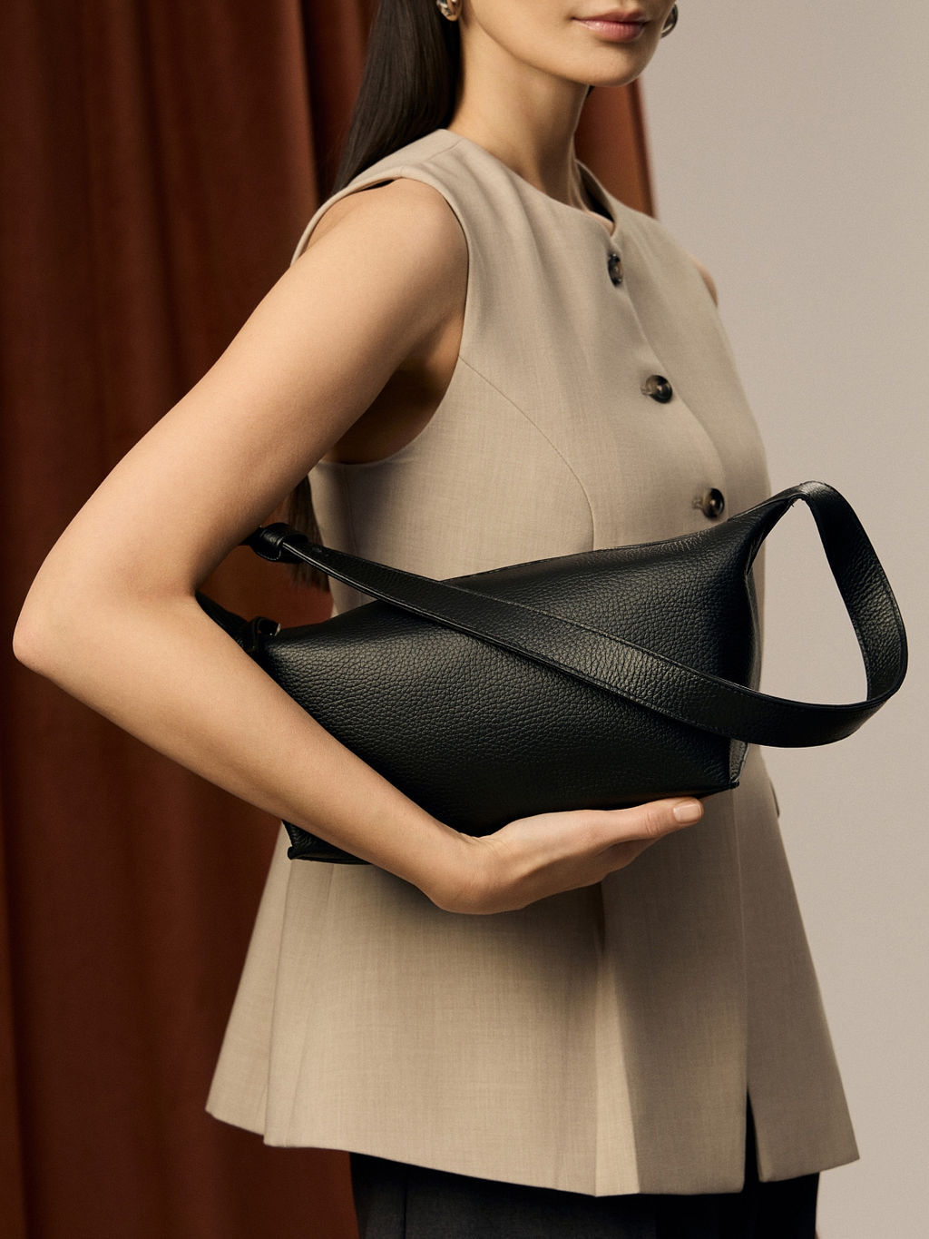 Сумка из прочной натуральной кожи универсального черного цвета стильный и удобный повседневный аксессуар для необходимых вещей. Модель жесткой формы с основным отделением на молнии и несъемным прочным ремешком средней длины.