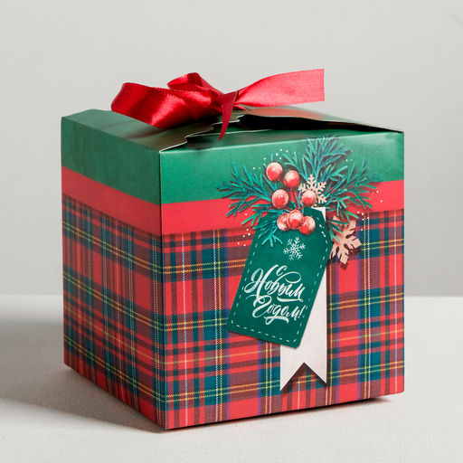Форма: Куб. Плотность, г/м²: 250. Допустимый вес вложения, г: 500. Тематика: Клетка. Символ года: Нет. Тематика праздника: Новый год. Особенности: Без особенностей. Вид: Складные коробки. Размер: Средний (18-24 см). Бесплатная доставка: Да. Наша разработка: Да. Примечание: Лента в комплекте..