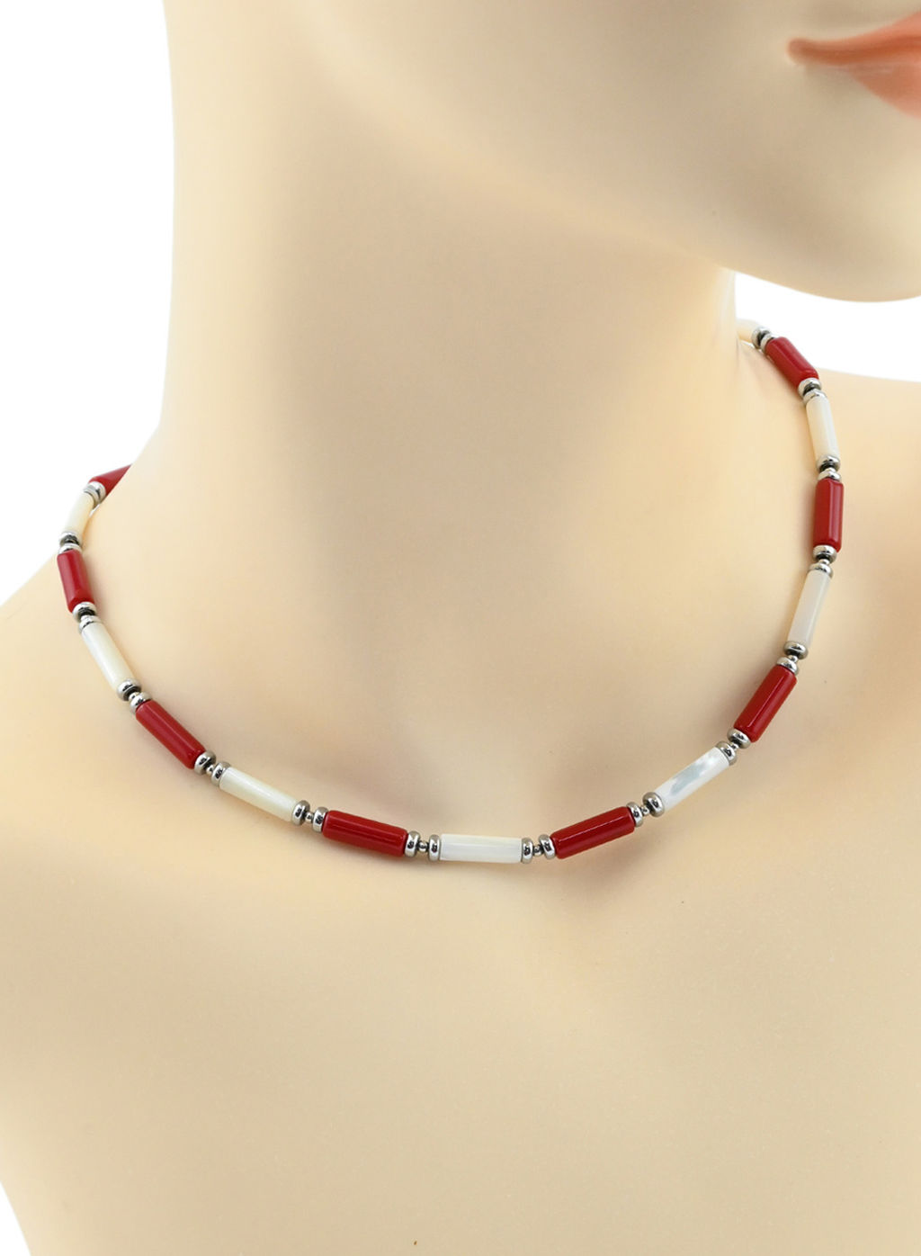 • Чокер из перламутра и коралла (имитация) цилиндр 4*13мм, 40см Радуга камня