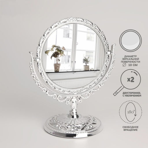 Зеркало настольное «Круг», двустороннее, с увеличением, d зеркальной поверхности 10 см, цвет серебристый