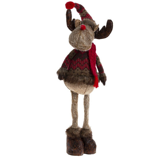 Этот милый олень одет в теплый вязаный свитер и колпак с красным помпоном. Его мордочка выполнена из мягкого светло-коричневого меха, что делает его особенно милым и трогательным. Рога и копыта выполнены из коричневой гладкой ткани, имитирующей кожу, добавляя игрушке реалистичности. Особая изюминка - колпак! В него встроена проволока, что позволяет придать ему любую забавную форму. Также игрушка имеет телескопические ножки, за счет этого можно регулировать ее высоту от 80 до 60 см.