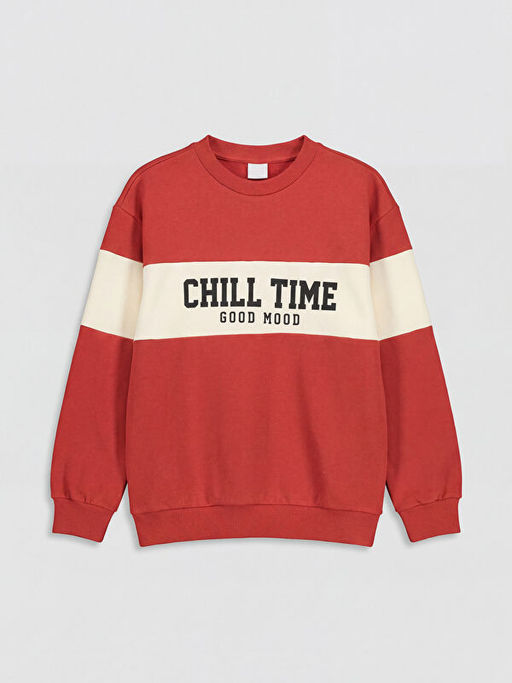 Bisiklet Yaka Bask?l? Erkek ?ocuk Sweatshirt