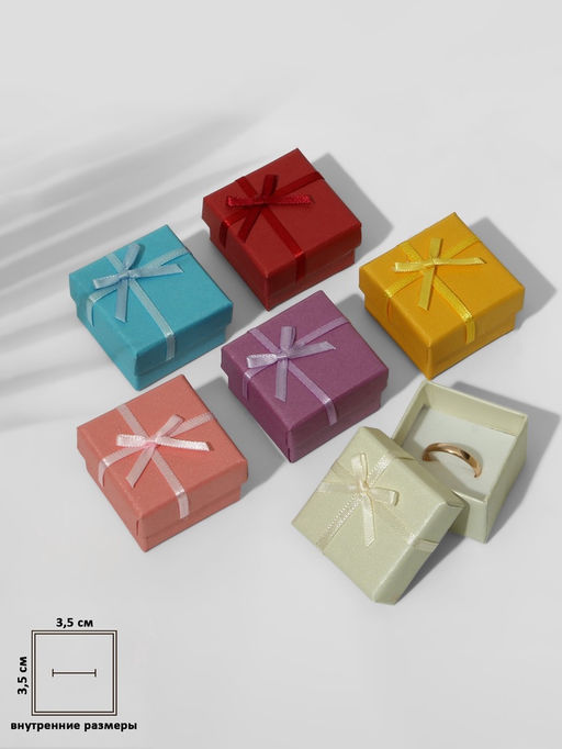 • Набор коробочек подарочных 6 шт. под кольцо «Перламутр с бантиком», 4×4 см, МИКС