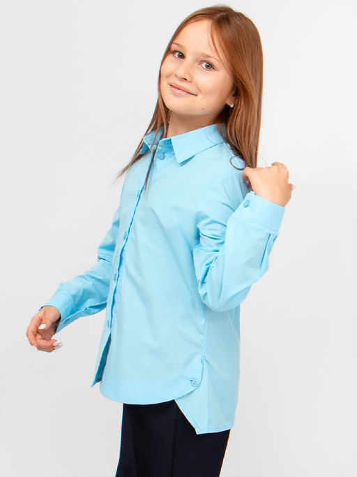 Блузка для девочки Соль&Перец на пуговицах. Асимметричная линия низа, рукава трансформируются в 3/4. Блузка прекрасно сочетается как с брюками, так и с юбкой, подчеркнет индивидуальный стиль девочки, и разнообразит ее повседневный школьный образ.