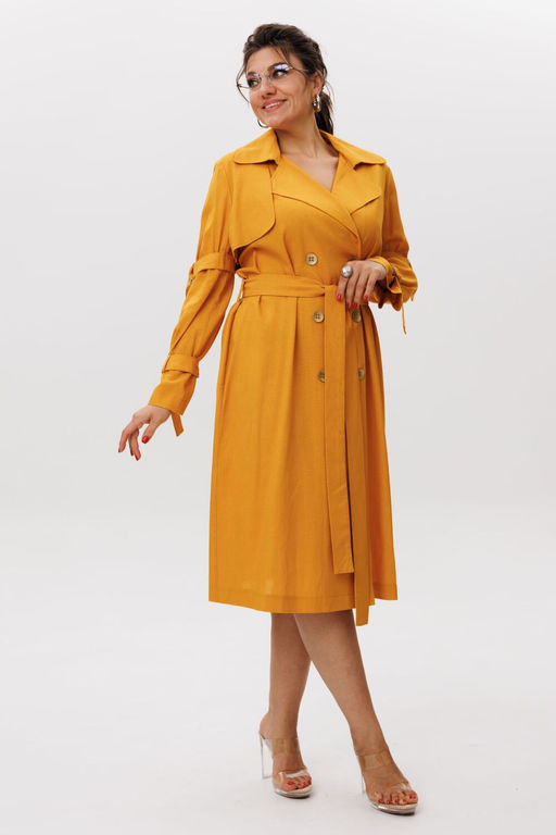 Состав: Вискоза-70%; Лён-30%; Льняное платье-тренч в цвете янтарный мед элегантность вне времени. Это платье идеальный спутник для тех, кто ценит утончённую простоту и безупречный крой. Сшитое из натурального льна, оно дарит лёгкость и комфорт, оставаясь при этом выразительным элементом гардероба. Прямой свободный силуэт с отлётными кокетками по переду и спинке подчёркивает архитектурность формы, а детали классического тренча придают образу благородную строгость. Двубортная застёжка на пуговицы, лацканы и отложной воротник на стойке добавляют ноту английской сдержанности, а свободные втачные рукава с патами и карманы вносят функциональность и динамику. Завязывающийся пояс мягко обозначает талию, позволяя играть с пропорциями. Необычный крой и выразительные рукава делают это платье стильной вещью оно одинаково эффектно смотрится как с лодочками и сумкой-ридикюлем, так и с босоножками и плетёной корзиной. Незаменимо для прохладного летнего вечера, прогулок у моря или городских выходов в нём вы будете чувствовать себя уверенно, стильно и невероятно женственно. Это не просто платье от Анелли, а маленькое произведение портновского искусства. Рост модели 173 см, размер 52. Для того чтобы подобрать для себя идеальный размер, обязательно сверяйтесь с замерами в описании, мы их делаем индивидуально к каждому изделию. А если будут вопросы задавайте их менеджерам или пишите в отдел заботы. Замеры: Размер 50: ОГ-110; ОБ-122; ОП-38; ДИ-110; ДР-61; Размер 52: ОГ-115; ОБ-127; ОП-38; ДИ-110; ДР-61; Размер 54: ОГ-120; ОБ-132; ОП-40; ДИ-111; ДР-62; Размер 56: ОГ-125; ОБ-136; ОП-40; ДИ-111; ДР-63; -- Характеристики -- Состав: Вискоза-70%; Лён-30%; Сезон: Лето Рост: 164 Страна бренда: Беларусь