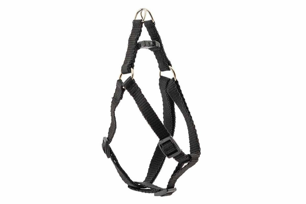 Шлейка предназначена для выгула животных небольших размеров с обхватом шеи до 36см и обхватом груди (за передними лапами) от 32см до 48см. Конструкция шлейки позволяет застёгивать и расстёгивать её одним движением, поэтому такую шлейку часто называют быстросъёмной. Изготавливается из цветной синтетической ленты шириной 10мм. Пряжка пластиковая фастекс служит только для фиксации шлейки на теле животного и не несёт серьёзной механической нагрузки. Полукольца и кольца металлические никелированные, сваренные встык. Имеет регулировки обхватов шеи и груди, а также регулировку длины перемычки, проходящей между лапами.