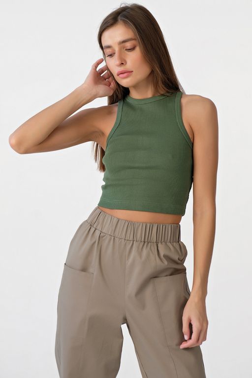 • Кроп-топ трикотажный с американской проймой из хлопка зеленый