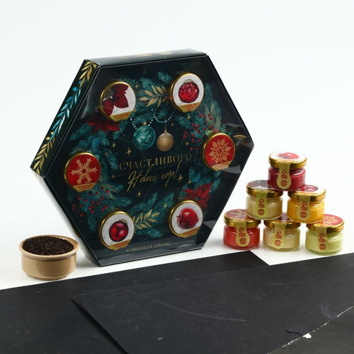 • Подарочный набор новогодний «Счастливого Нового года»: чай чёрный, крем-мёд (6 шт.x30 г)