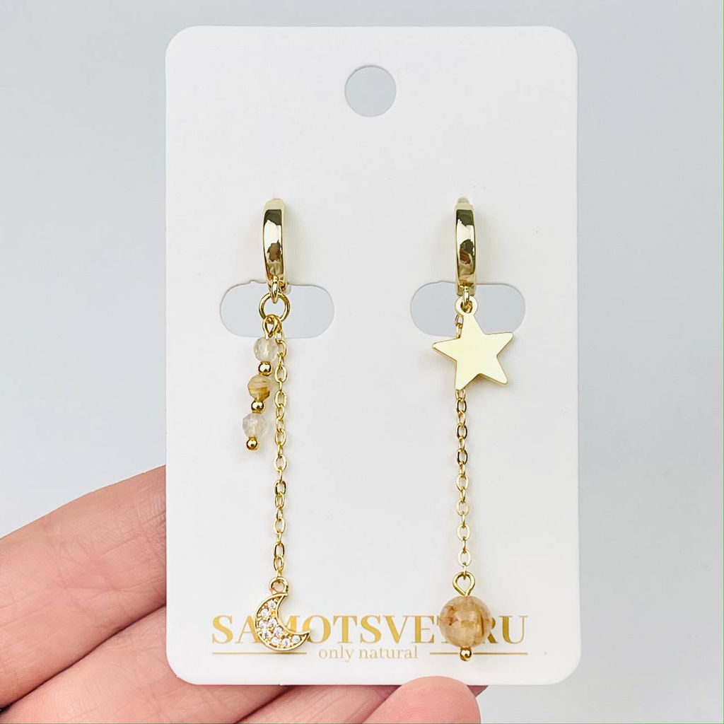 • Серьги на цепочке из камня Рутиловый кварц "Волосатик"