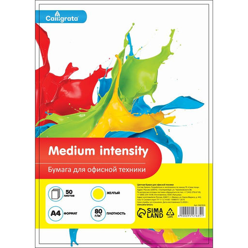 • Бумага цветная А4 50л Calligrata Умеренный интенсив Желтый 80г/м2