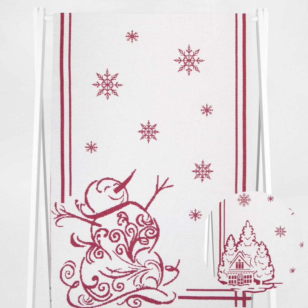 • Полотенце х/б 9с23.111ж1 Снеговик и домик1(ДТЭ бордовый 50х140см