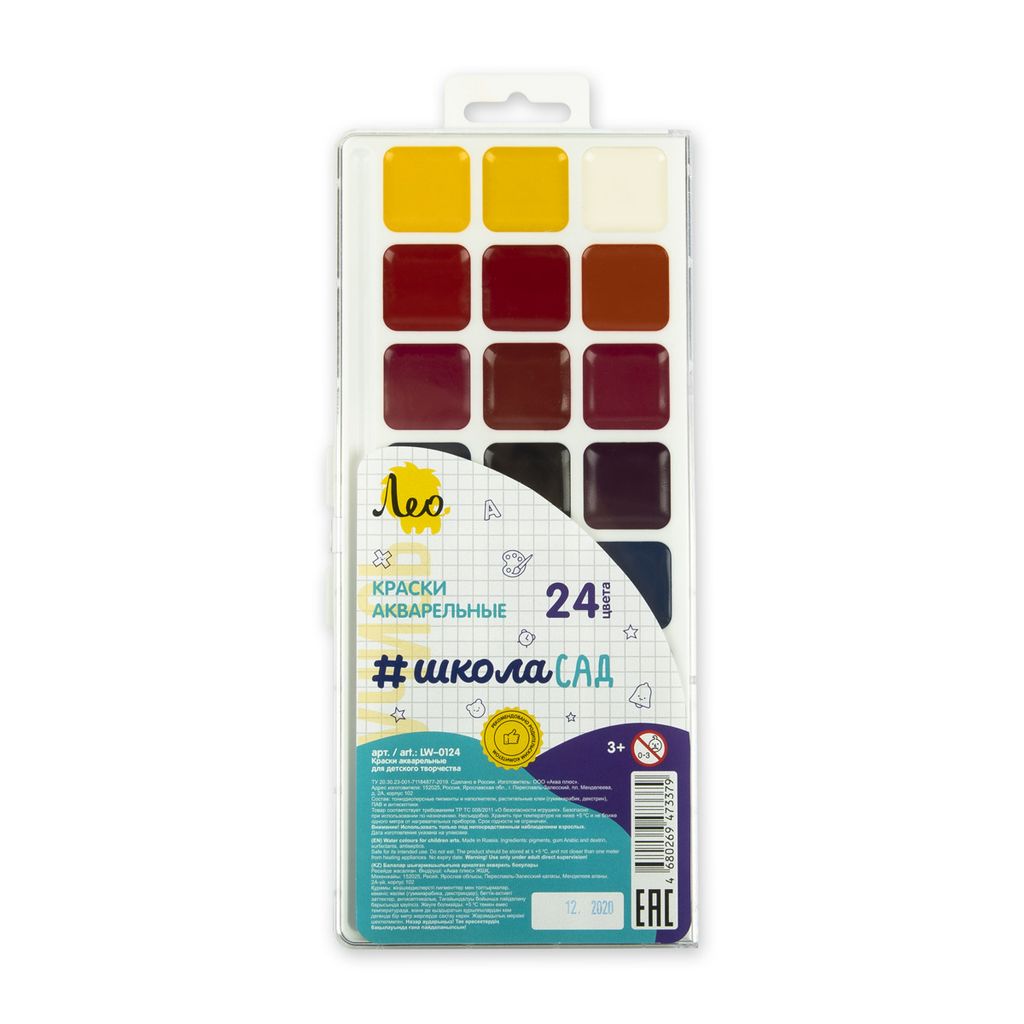 • Краска акварель Лео ШколаСад медовые, без кисти в пластиковой упаковке с европодвесом LW-0124 24 цв