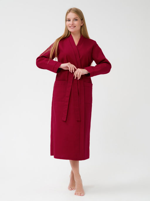 • Женский вафельный халат с планкой бордовый В-02 (15)