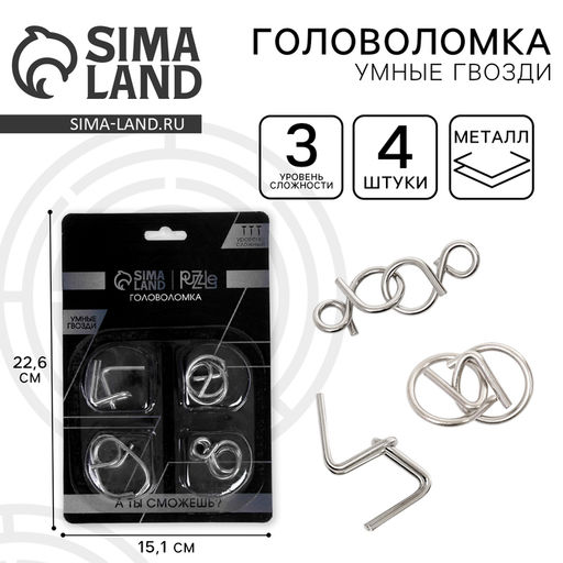 Цена за 3 шт. Металлические головоломки «Игры разума №5», набор 4 шт., на блистере