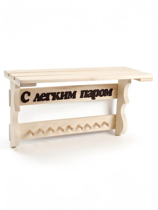 Полка-вешалка для бани и сауны «С лёгким паром», 64×23×27 см, деревянная, 9 крючков