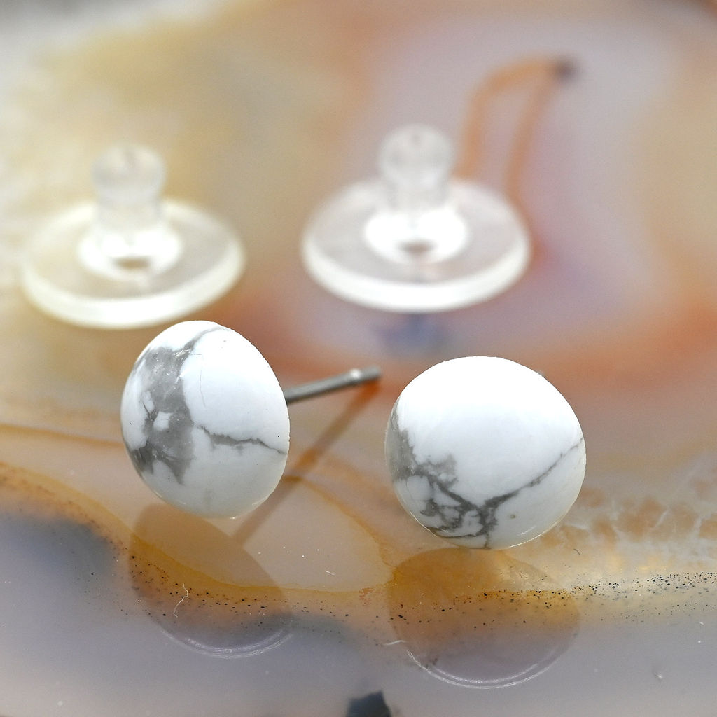 Серьги гвоздики кахолонг 7-8мм. Радуга камня