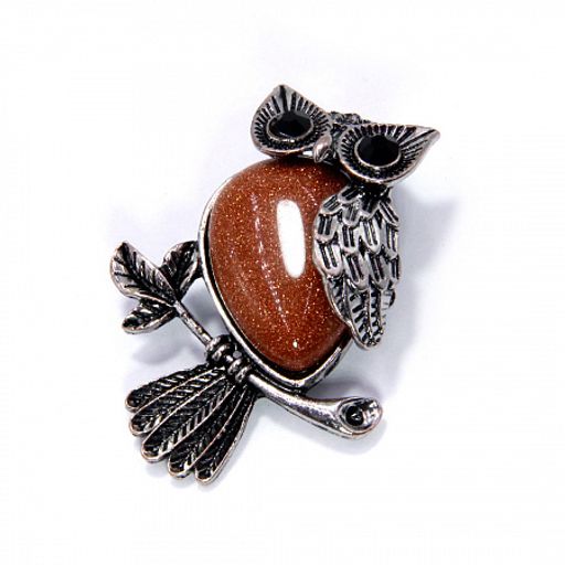 Брошь в стиле анимализма придется по душе любой девушке или женщине, как тонкий намек на их нрав и загадочность. Сова с вставкой из коричневого авантюрина не только добавит образу элегантности, но также станет талисманом и магическим защитником.