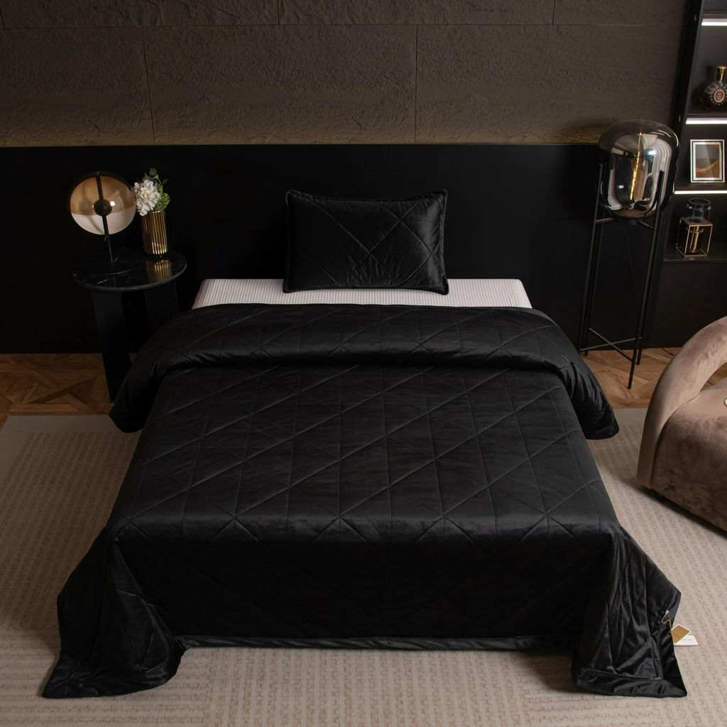 Велюровое покрывало - прекрасное дополнение интерьера спальни или гостиной, которое внесёт в пространство особую энергетику домашнего уюта. Отличительной чертой покрывала является невероятно мягкая бархатистая поверхность, которая подарит Вам незабываемые тактильные ощущения. Велюровые покрывала характеризуются прочностью и устойчивостью к механическому воздействию, воздухопроницаемостью. Изящное покрывало подчеркнёт строгие и лаконичные линии предмета мебели, смягчив их и придав неповторимое очарование не только постели, но и окружающему пространству. Геометрический узор на покрывале выполнен с использованием термостежки, что придаёт изделию особую изысканность и подчёркивает элегантность интерьера. Перед использованием рекомендуется отпарить покрывало, чтобы устранить складки, которые могли образоваться во время транспортировки и хранения товара. Материал: Бархат-велюр Состав материала: 100% пэ Наполнитель: Высокосиликонизированное микроволокно Состав наполнителя: 100% пэ Упаковка: Сумка ПВХ на молнии с ручками Изображения, элементы, расположение рисунка и цвет представленного на упаковке товара могут незначительно отличаться от оригинала. Размер: 1.5 спальное Покрывало: 160*220 см Наволочка: 50*70 см 1 шт. (с запАхом) Евро Макси Покрывало: 240*260 см Наволочка: 50*70 см 2 шт. (с запАхом) -- Характеристики -- Габариты: 58 x 45 x 12 см Вес: 2,5 кг Упаковка: ПВХ сумка Цвет: Черный Ссылка на видео: https-//www.youtube.com/embed/8Z4JwfJcOG8 Транспортировочная упаковка: 47.000/37.000/10.000 Состав: Ткань- 100% пэ | Наполнитель- 100% высокосиликонизированное полиэфирное волокно Яндекс Видео: https-//yadi.sk/i/08TWbIlZNXDv5A Яндекс Фото: https-//yadi.sk/d/c4lL5vfG7SLmUQ Материал: Бархат-велюр Состав материала: 100% пэ Наполнитель: Высокосиликонизированное микроволокно Состав наполнителя: 100% пэ Покрывало: 160*220 см Наволочка: 50*70 см 1 шт. (с запАхом)