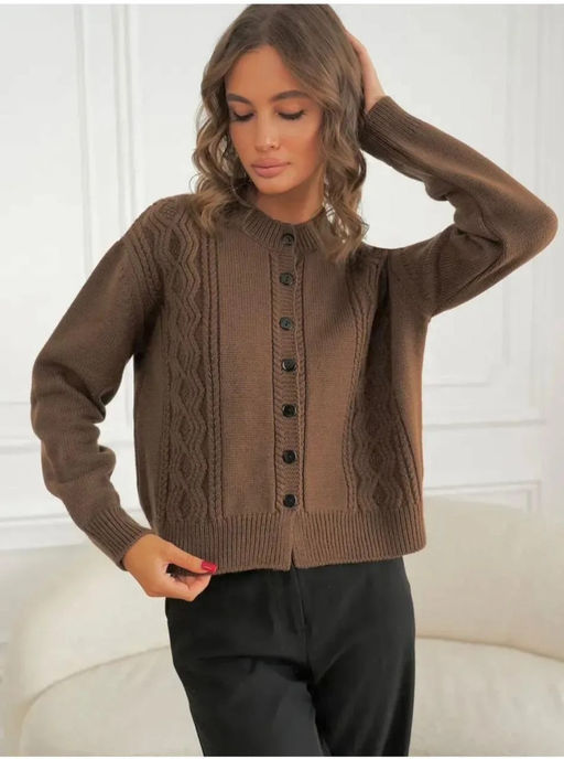 • K13726 Кардиган (вязаный трикотаж) КОРИЧНЕВЫЙ