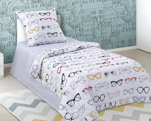 Уникальность комплекта для сна заключается в том, что вместо традиционного пододеяльника и наволочек в комплект входит тонкое стеганое одеяло, и стеганые наволочки, выполненные из ткани того же дизайна, что и основной комплект.