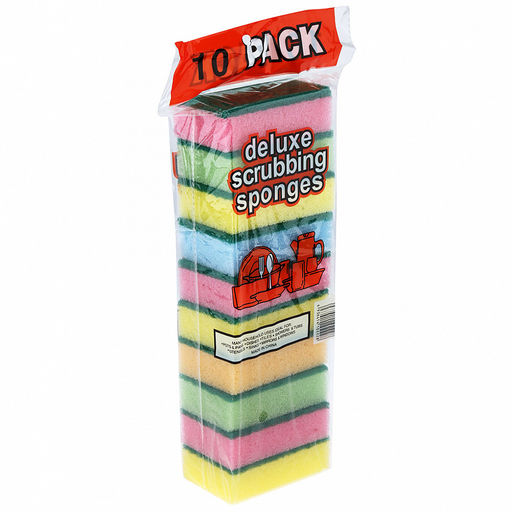 • Губка для посуды 10 штук 9х6х2,7см поролон с абразивом "Радуга" (Китай)